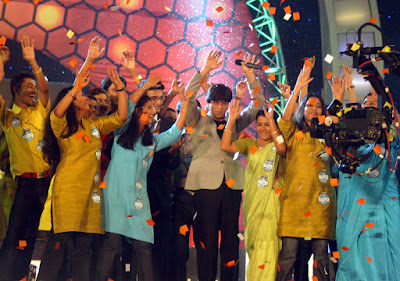 Cricketer Sourav Ganguly and Bollywood star Shahrukh Khan at the shooting of a TV program in Kolkata on Sunday.